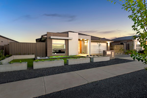 This stunning, modern residence has been designed and built as a single-story family haven, equipped with the latest in fittings, fixtures and technology for a young couple with a single child. A combination of brick and render creates a contemporary exterior to the home which is enhanced by the concrete roof tiles.