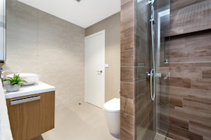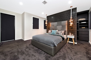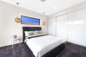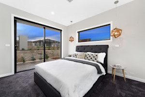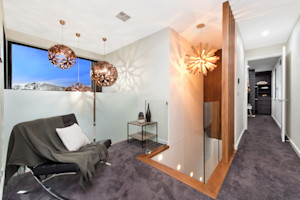 In keeping with the theme of inviting nature inside, timber textures are used in key areas including the open stringer staircase with its 60mm brushbox treads and vertical timber lining. A cedar-cladded ceiling in the alfresco area and cedar cladding on either side of the house perfectly continues this trend. The bathroom and ensuites also feature a timber-look tile together with the luxury inclusion of a raised freestanding bath to provide another opportunity to enjoy the stunning mountain views.