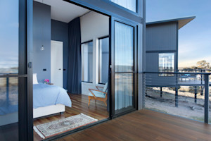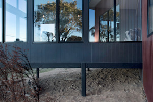 To further enhance the aesthetic of the home in its environment, the decking in Spotted Gum and the expressed structural steel beams are some of the main visual features of the home, seen almost immediately upon approach.